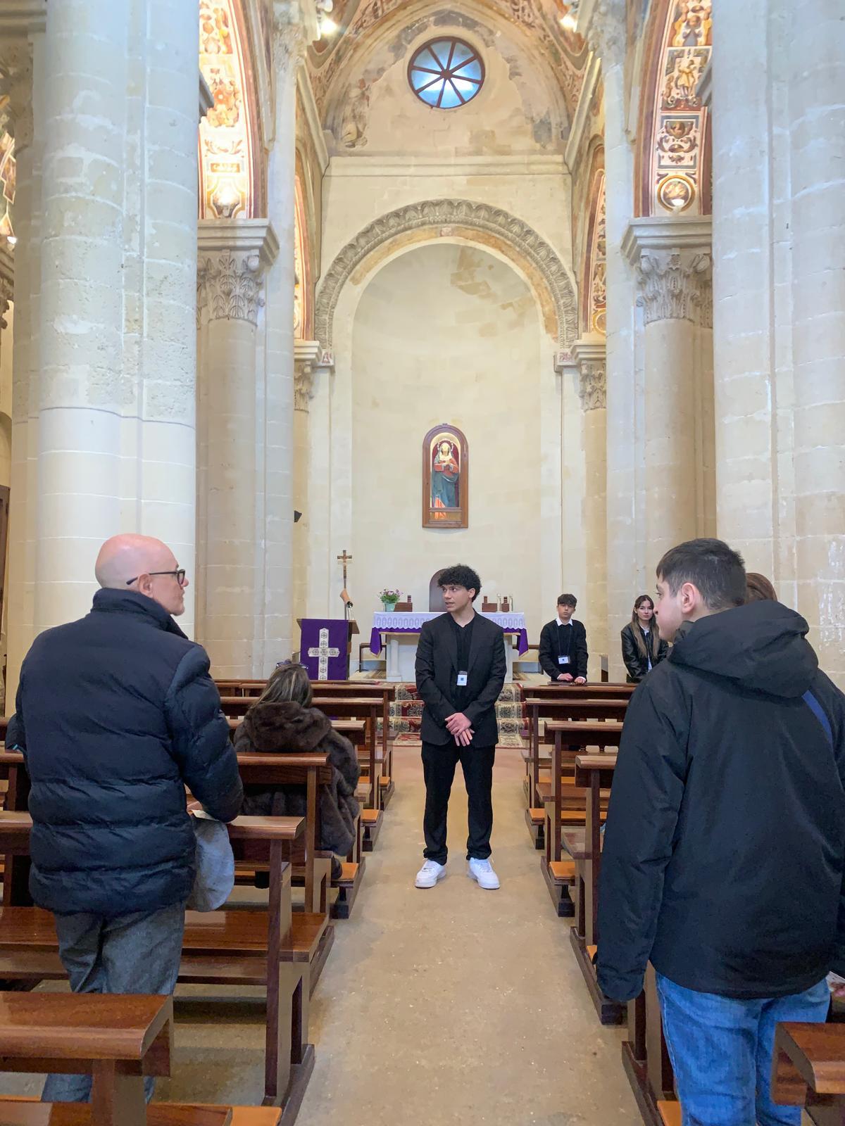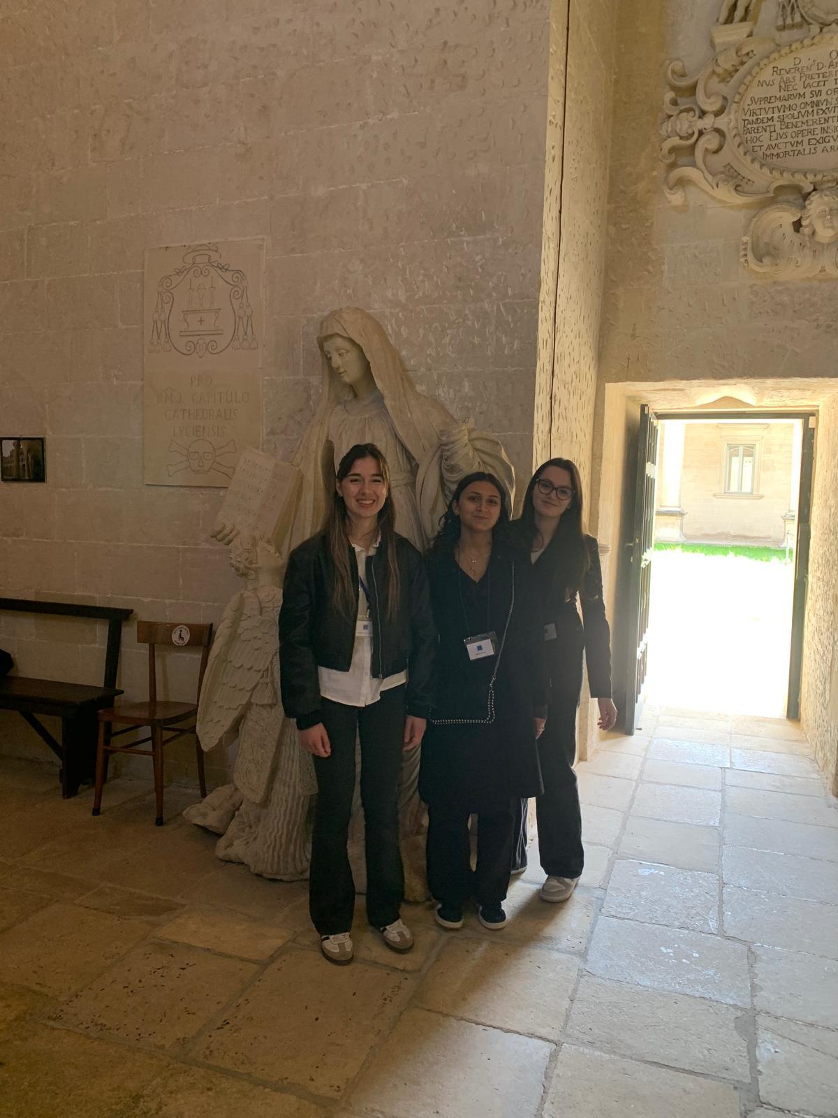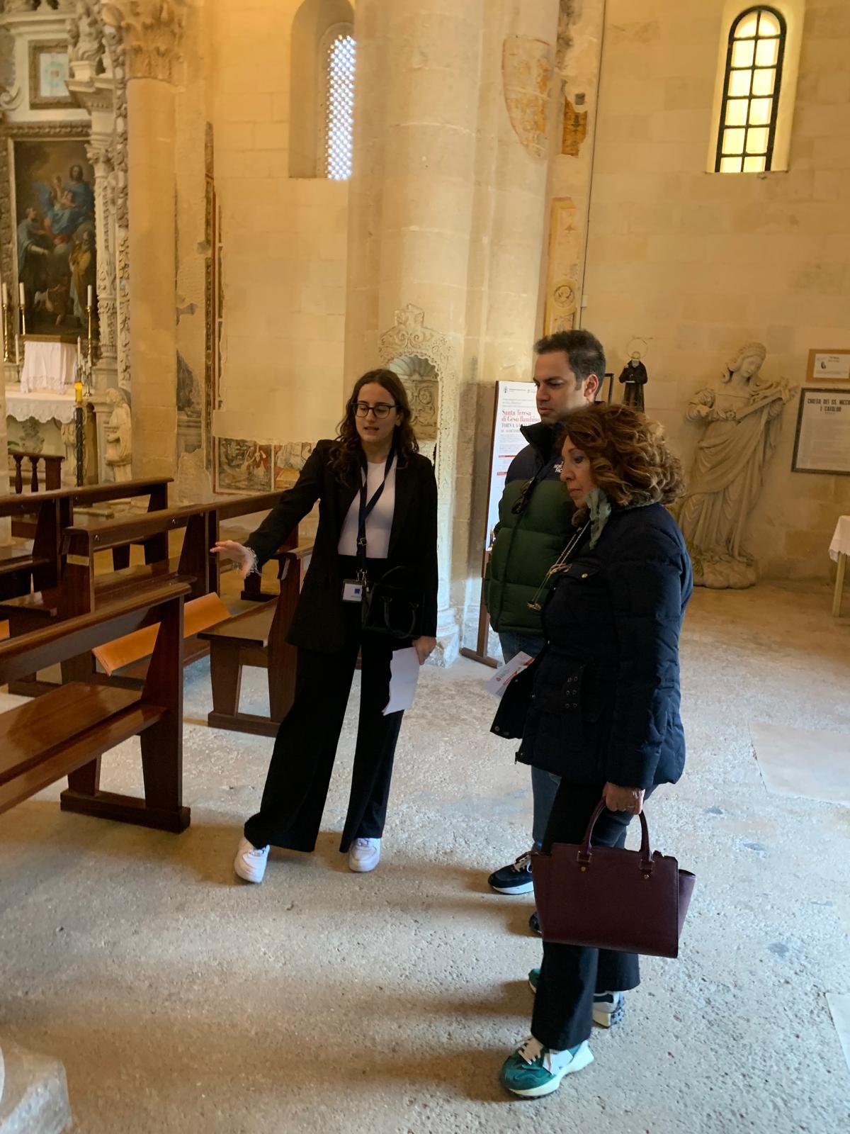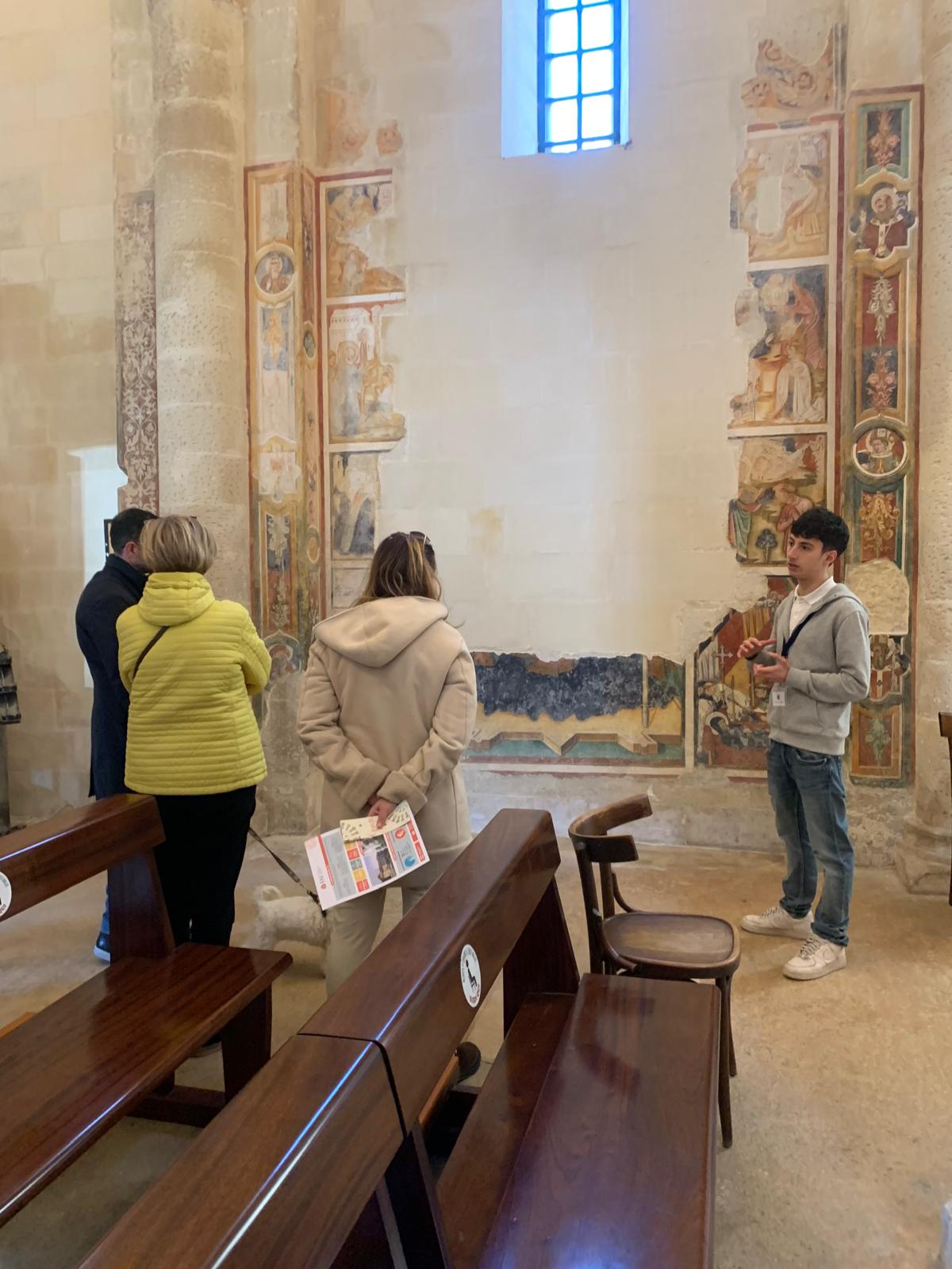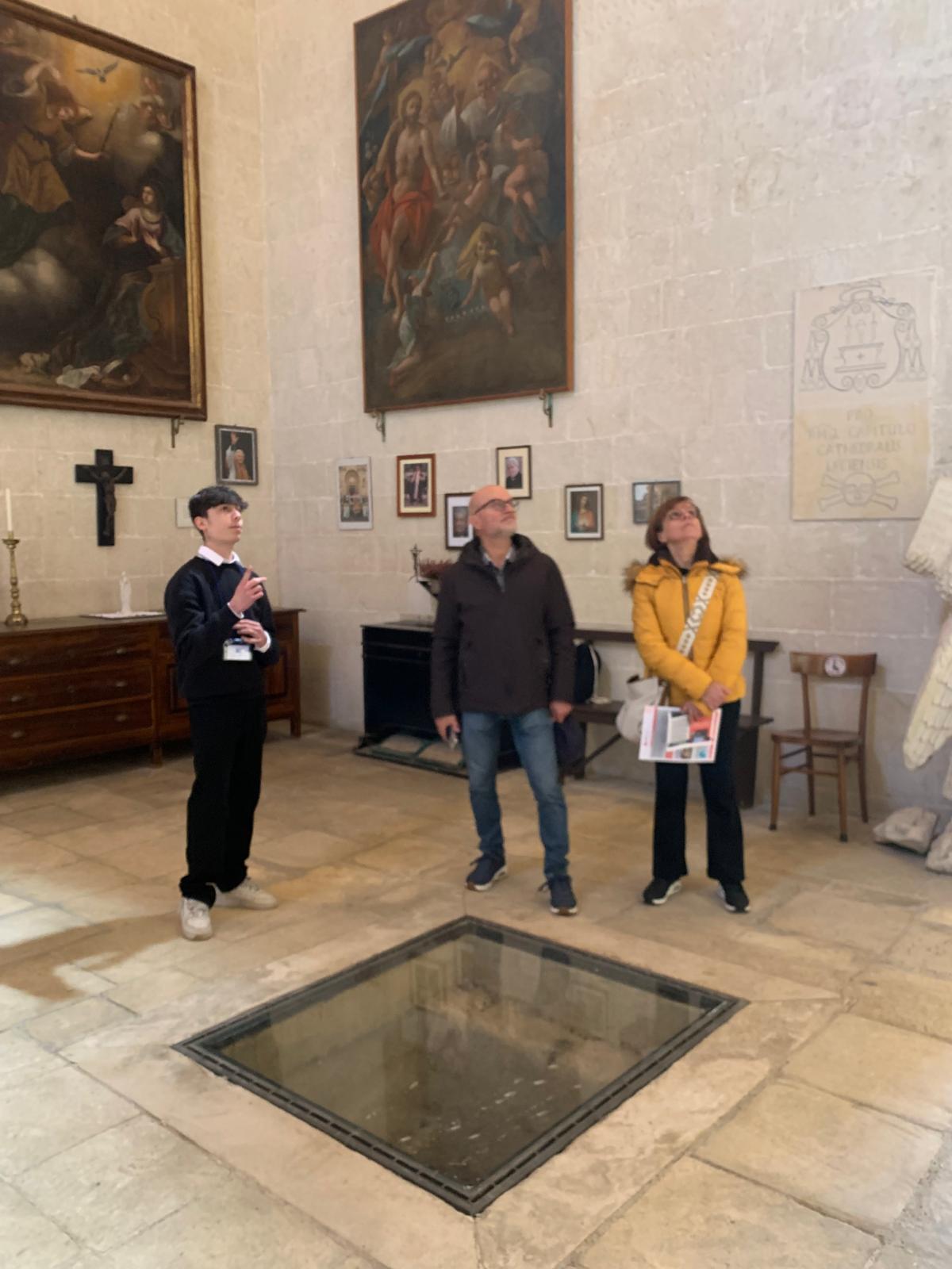 Nel ruolo di Ciceroni, gli studenti hanno accompagnato i visitatori alla scoperta della Chiesa dei Santi Niccolò e Cataldo, preziosa gemma del romanico pugliese situato presso il cimitero monumentale di Lecce. Con preparazione e passione, hanno raccontato la storia e le peculiarità artistiche del sito, trasformando la visita in un’esperienza emozionante e coinvolgente.