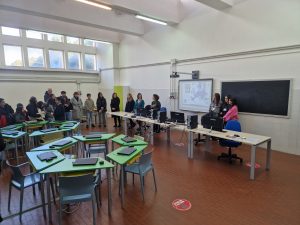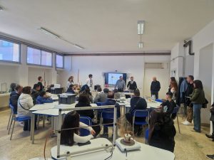 Terminata la visita nei laboratori specialistici del triennio del Tecnico Tecnologico, i gruppi sono stati accompagnati al primo piano per la visita dei laboratori comuni a tutti gli indirizzi di studio del Fermi.
