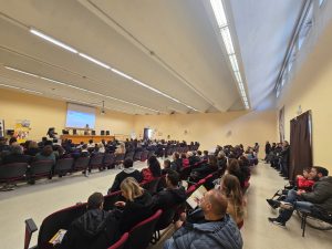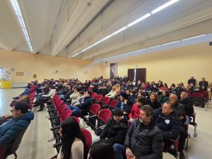 All’interno dell’aula magna si è tenuta l’accoglienza e la presentazione dell’offerta formativa da parte delle FF.SS. Orientamento: prof.ssa Luigina Altamuta e prof. Sergio Frangillo, organizzatori, in stretta collaborazione con il corpo docente, di tutti gli eventi in programma.