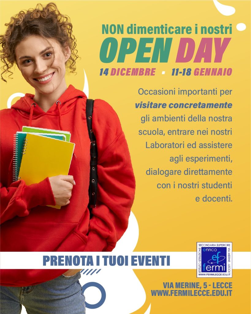 Alla luce dei riscontri positivi ricevuti si prospetta una massiccia partecipazione di studenti e famiglie ai prossimi Open Days del 14 Dicembre e dell’11 e 18 Gennaio 2025 ed è possibile auspicare una crescita degli iscritti nel prossimo anno scolastico nel solco del trend positivo che vede, tra le scuole della provincia, il Fermi in costante crescita negli ultimi anni.