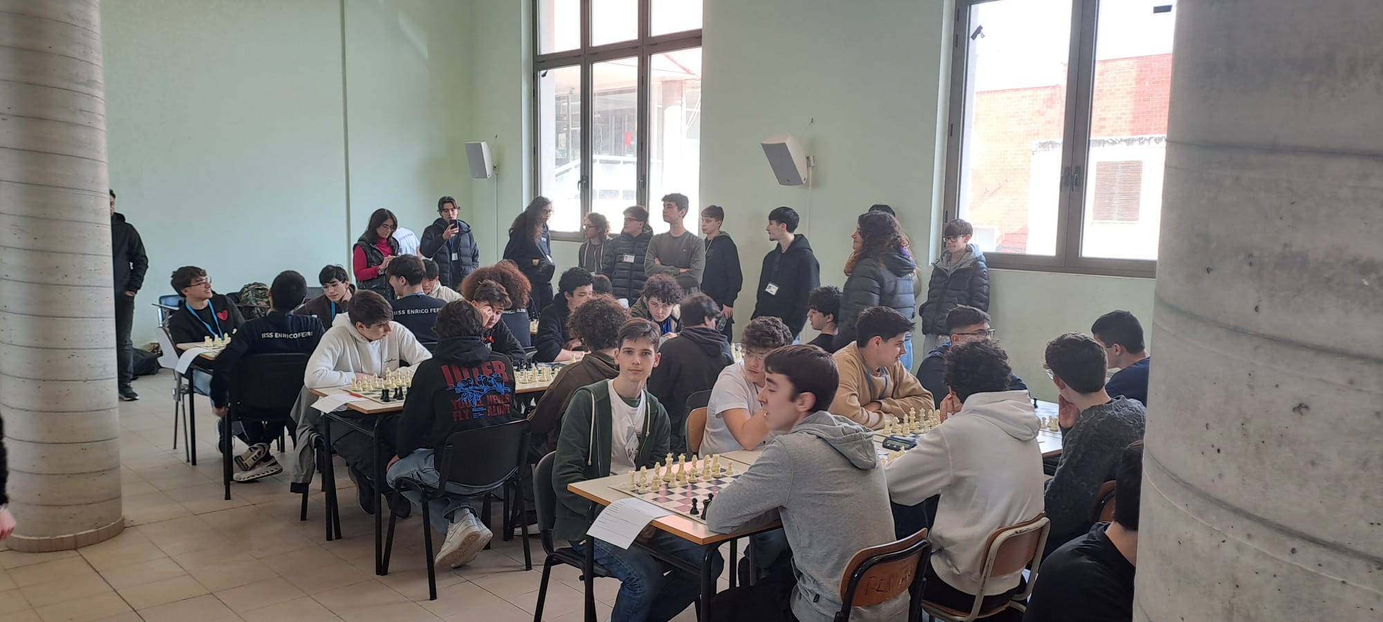 L’accoglienza delle squadre è iniziata alle ore 08:00, con l’inizio dei turni di gioco a seguire. L’organizzazione, a cura della Delegazione Provinciale FSI e di numerosi circoli scacchistici del territorio, è stata supportata dagli studenti del gruppo “FERMI STAFF” che hanno contribuito alla buona riuscita della manifestazione occupandosi dell’accoglienza e gestione delle rappresentative e fornendo supporto tecnico e audio. Giovedì 19 marzo si è svolto il torneo riservato alle Scuole Primarie e alle Scuole Secondarie di 1° grado e venerdì 20 marzo si è svolta la fase provinciale dedicata alle categorie Allievi e Juniores degli Istituti Superiori di 2° grado che ha visto gareggiare 5 rappresentative del nostro Istituto e conquistare ben tre accessi alla fase regionale con il 2^ posto della squadra ALLIEVI Fermi1, il 3^ posto della squadra JUNIORES FEMMINILE ed il 4^ posto della squadra JUNIORES Fermi1 (vedi foto e classifiche allegate).