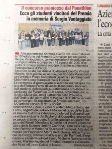 Mercoledì 28 maggio alle ore 10.30, presso l’Aula Magna del nostro Istituto si è tenuta la cerimonia di premiazione del XV° premio “Giornalista per un giorno – Sergio Vantaggiato”, organizzata dal Panathlon Club Lecce con il Patrocinio e la collaborazione della Provincia di Lecce e dell’Ordine dei Giornalisti di Puglia.